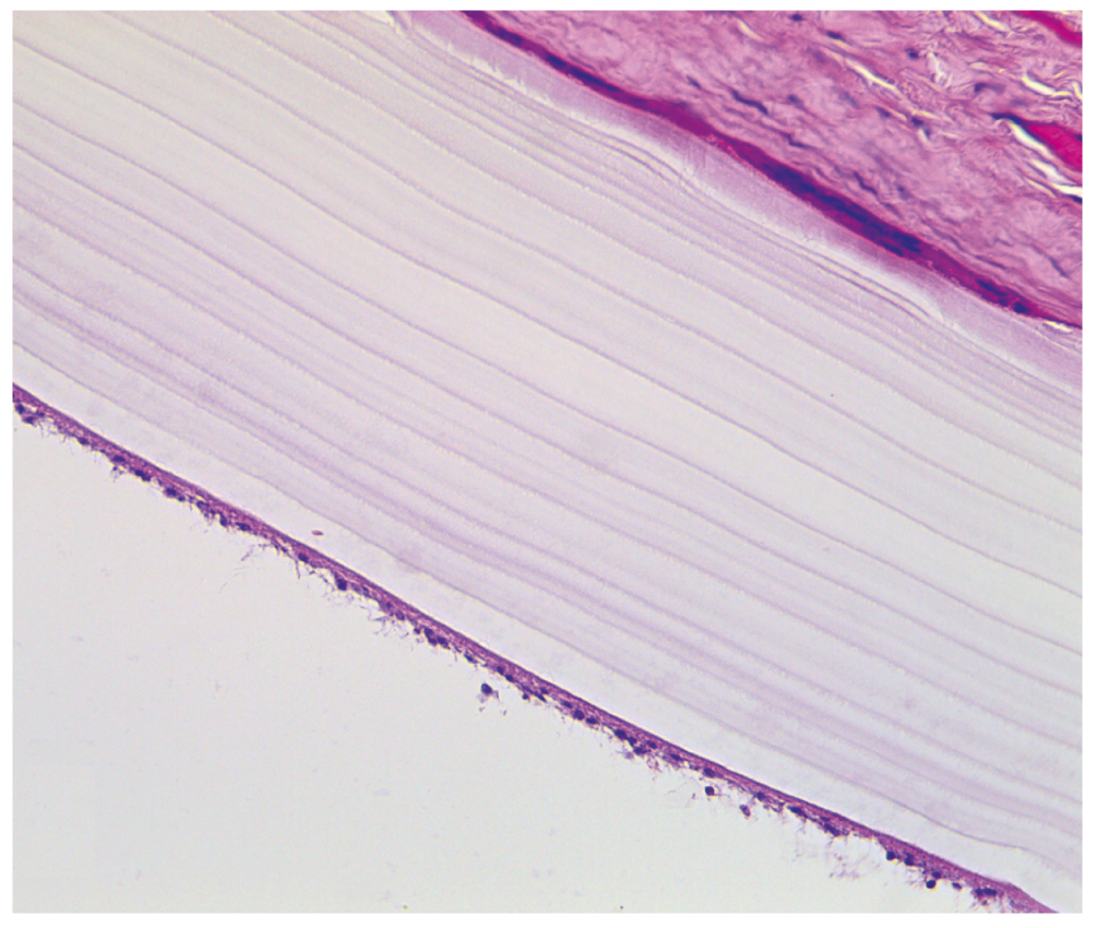Рис. 3. Ацефалоциста. Типичное строение стенки эхинококкового пузыря. ×400.