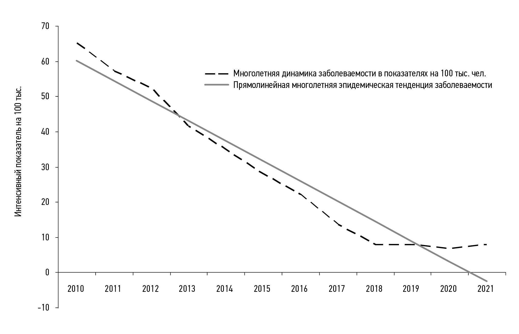 3. Fig. 2. Long-term dynamics of incidence of acute genital gonococcal infection in the Perm region for the period from 2010 to 2021.