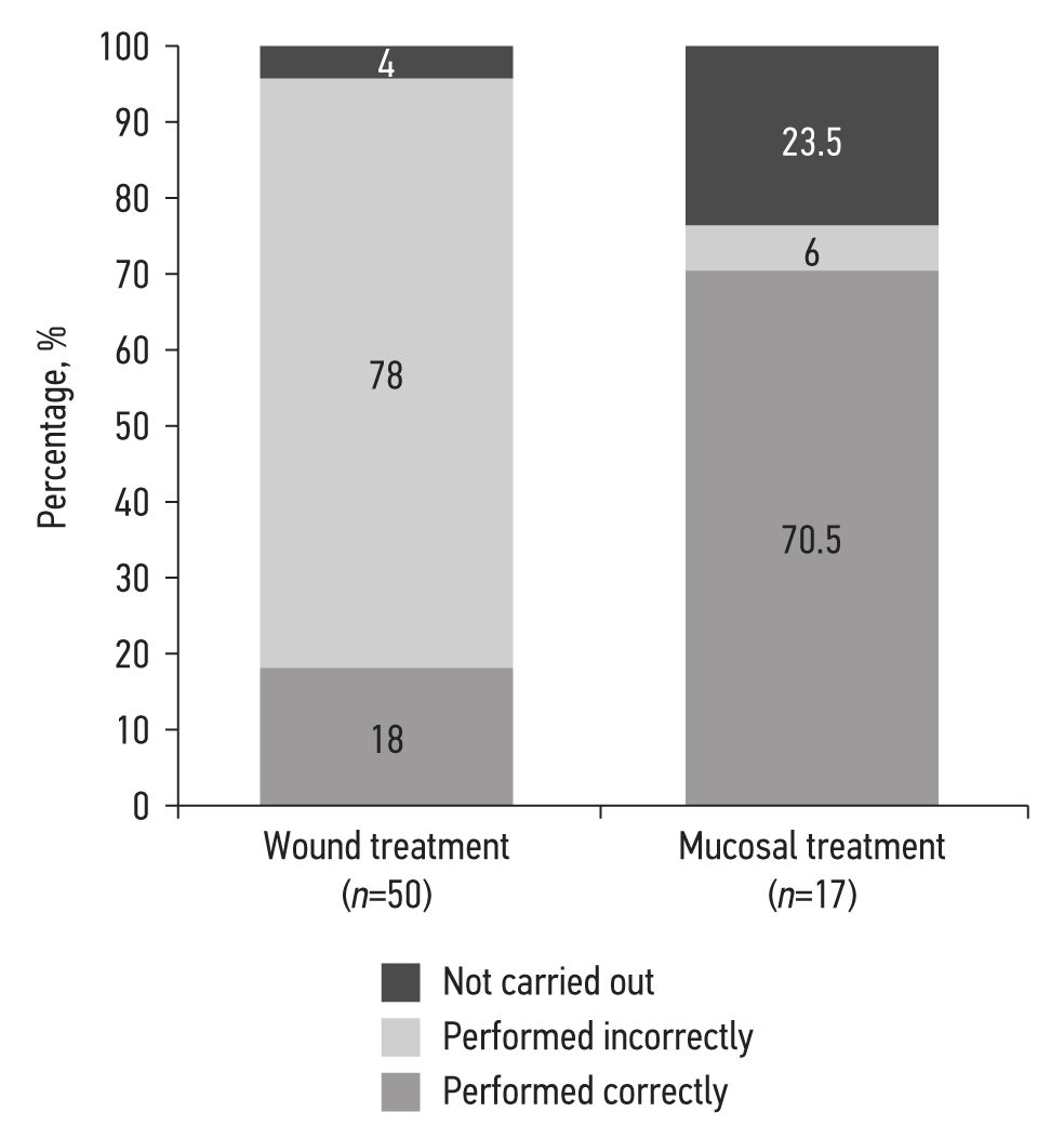 We also evaluated the actions of medical workers after the last emergency. The results of the assessment of the correctness of local treatment after the emergency are presented in Fig. 1.