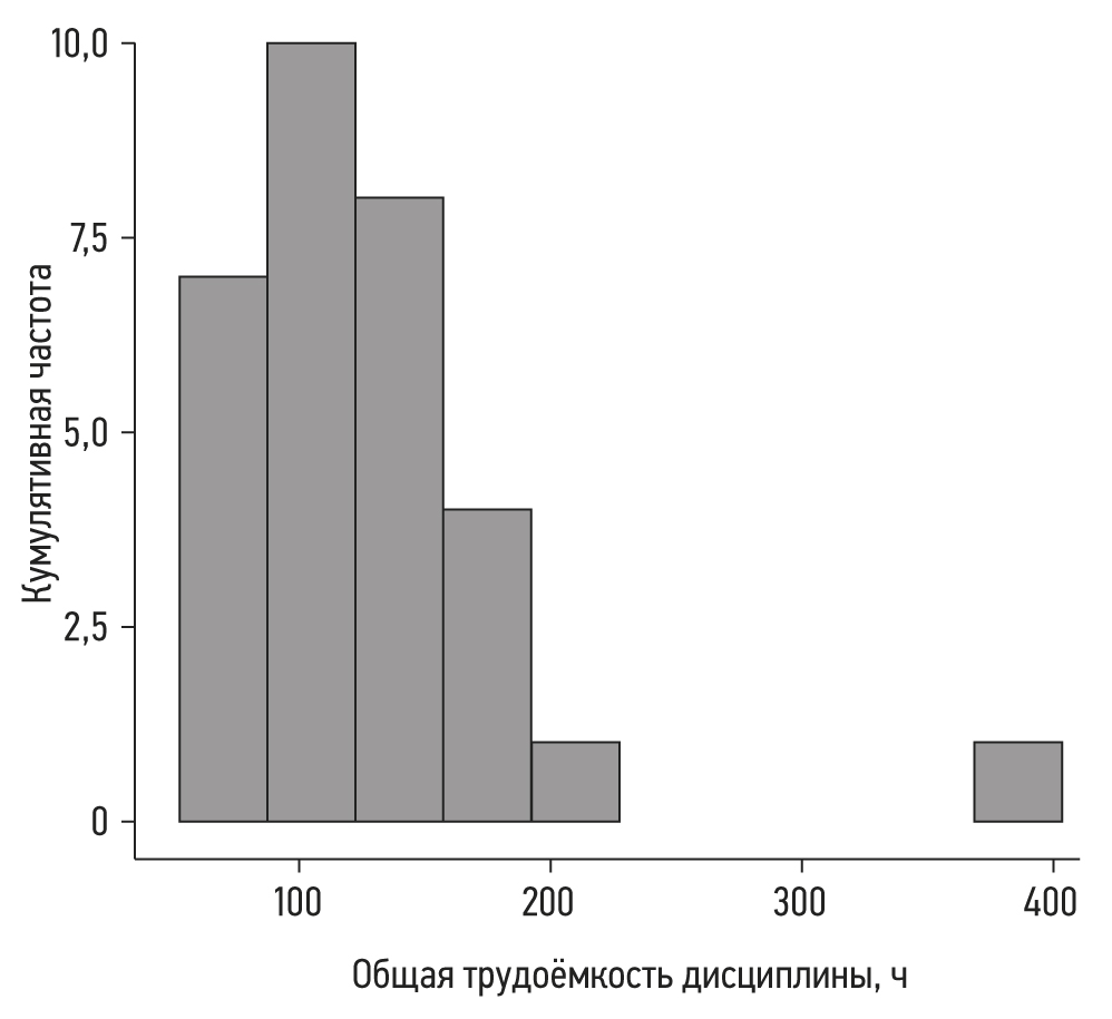 The total workload specified in the syllabi ranged widely, from 18 to 324 hours, with a median of 108 hours (Q1; Q3: 72; 137.5).