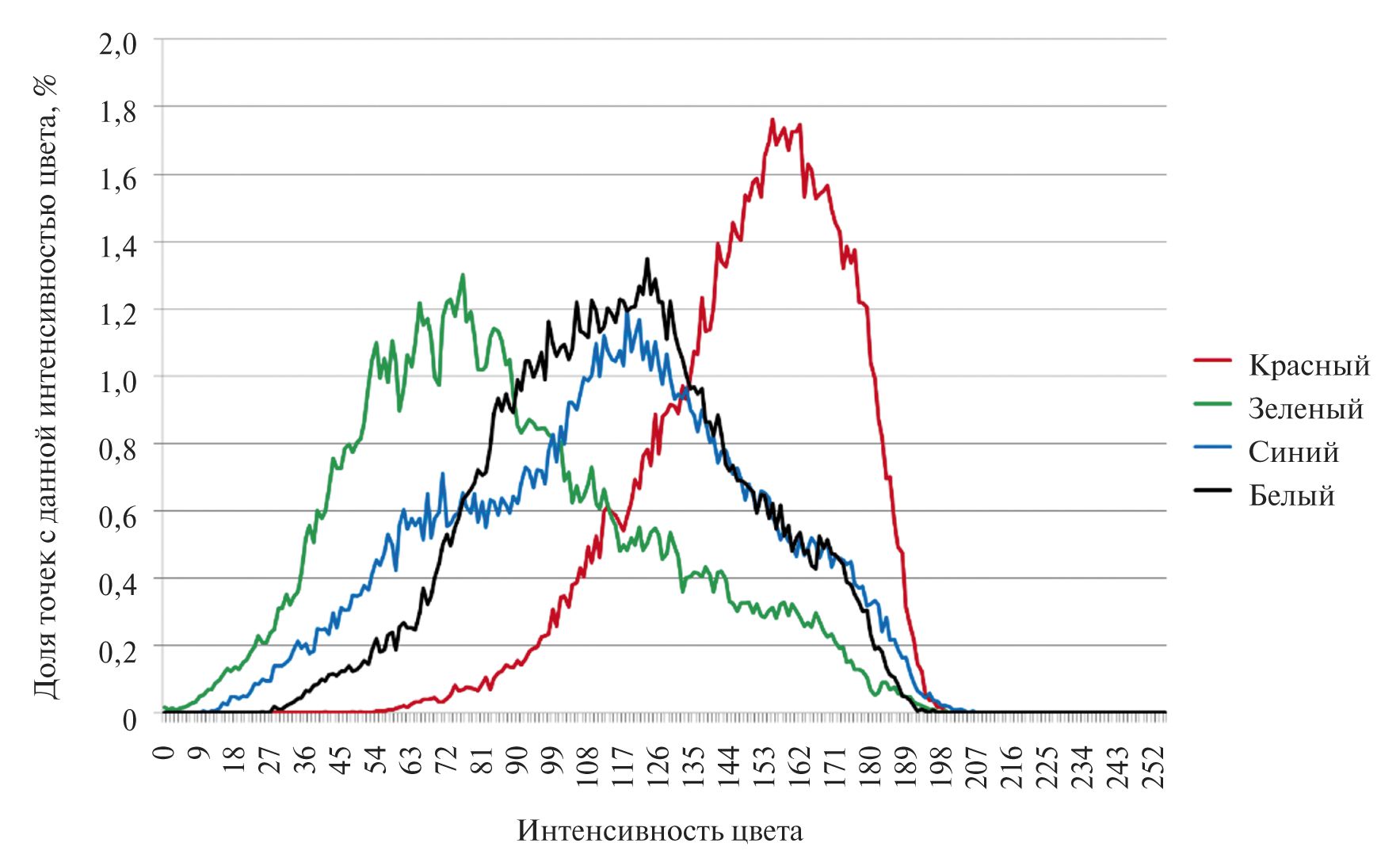 Рис. 3. Распределение по интенсивности цветов точек.