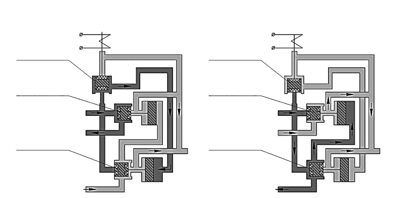 Рис. 4. Принцип действия распределителей Т055.064.