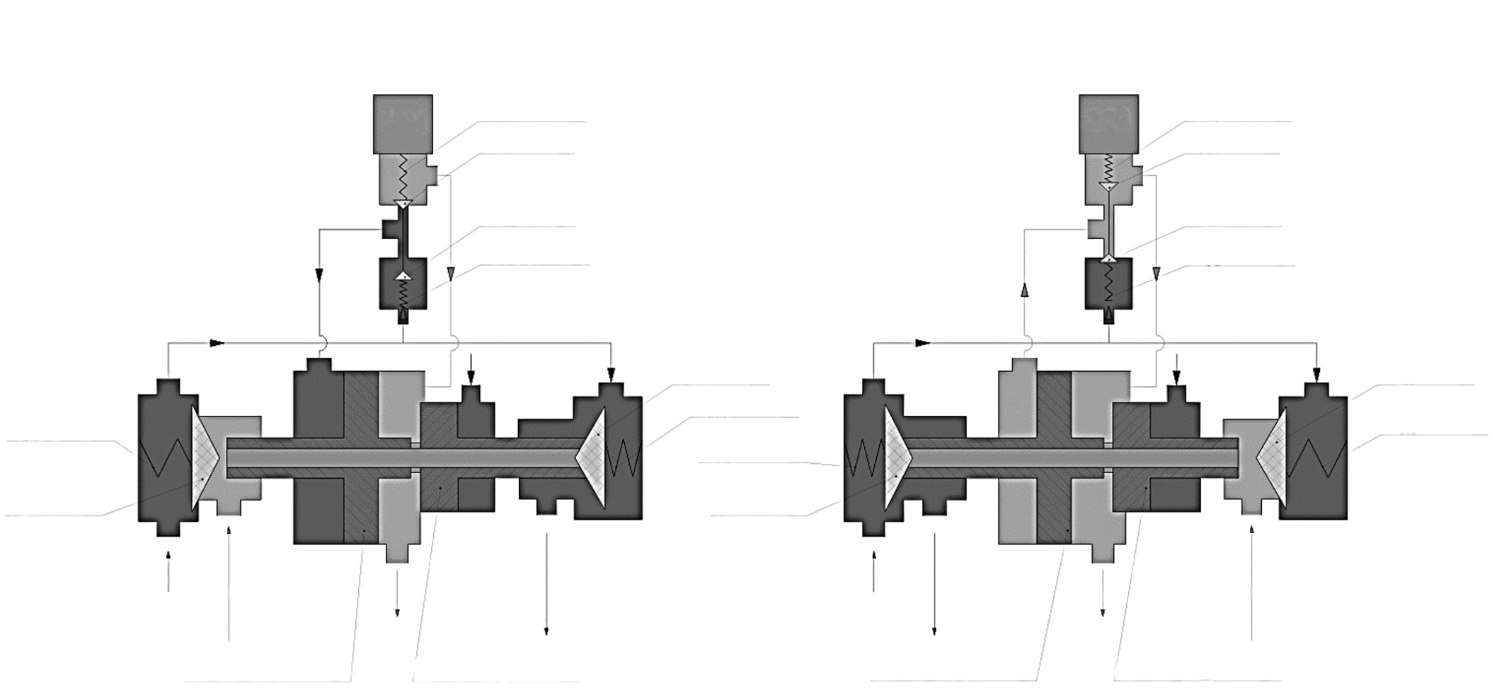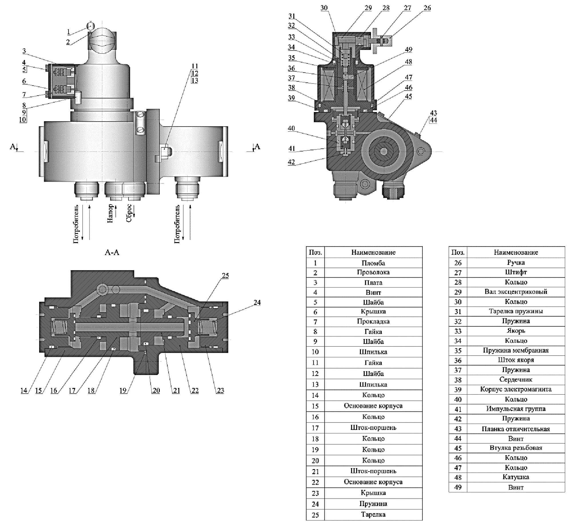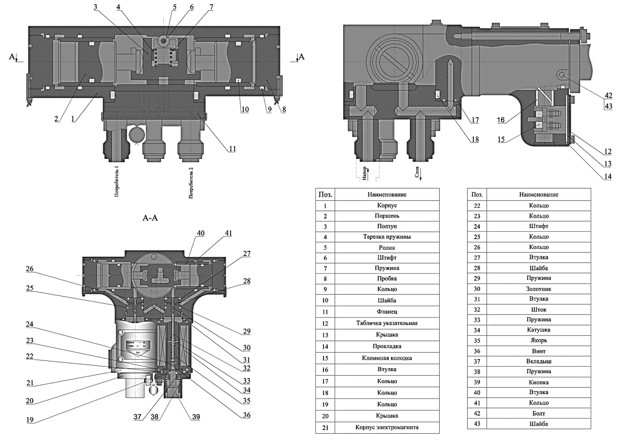 Золотниковый узел состоит из втулки поз. 27, пружины поз. 29, золотника поз. 30, втулки поз. 31 и предназначен для обеспечения рабочего перепада на поршнях.